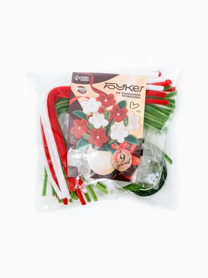 Набор для творчества цветы из пушистой проволоки в горшке, розовый цветок