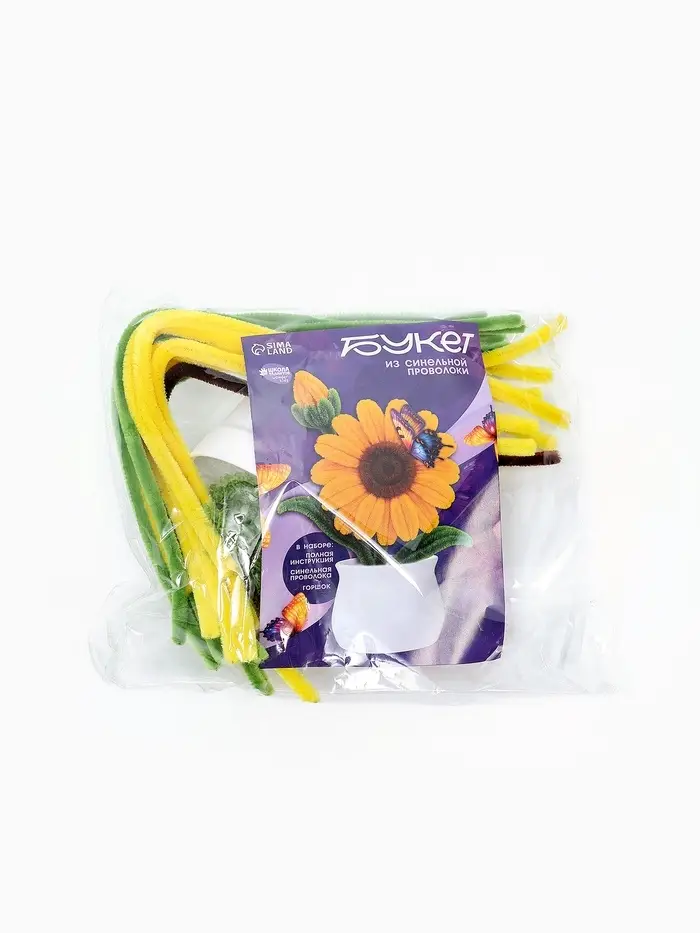 Набор для творчества цветы из пушистой проволоки в горшке, желтый цветок
