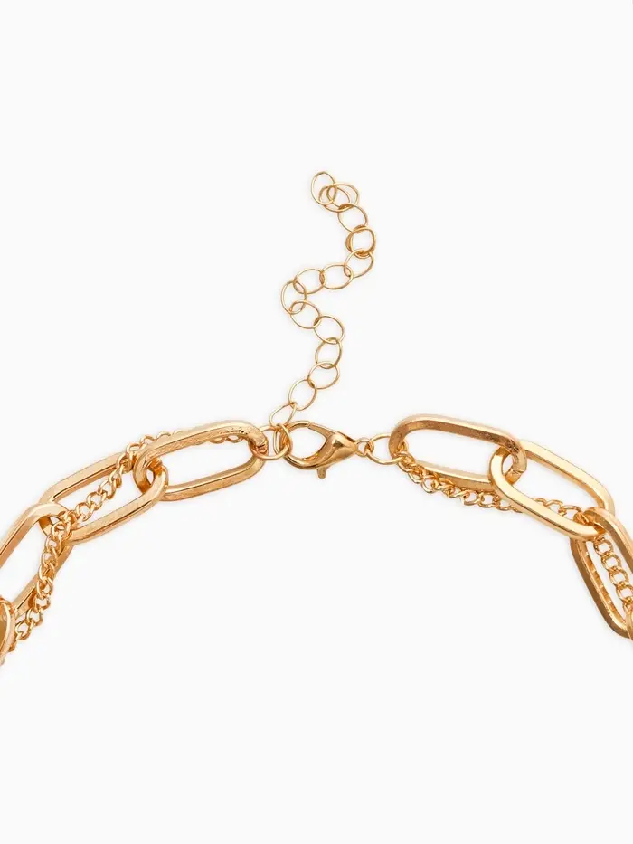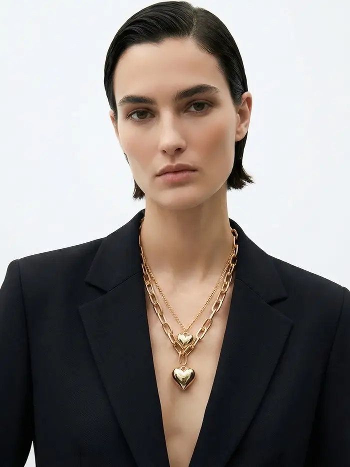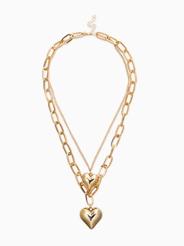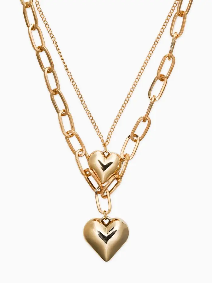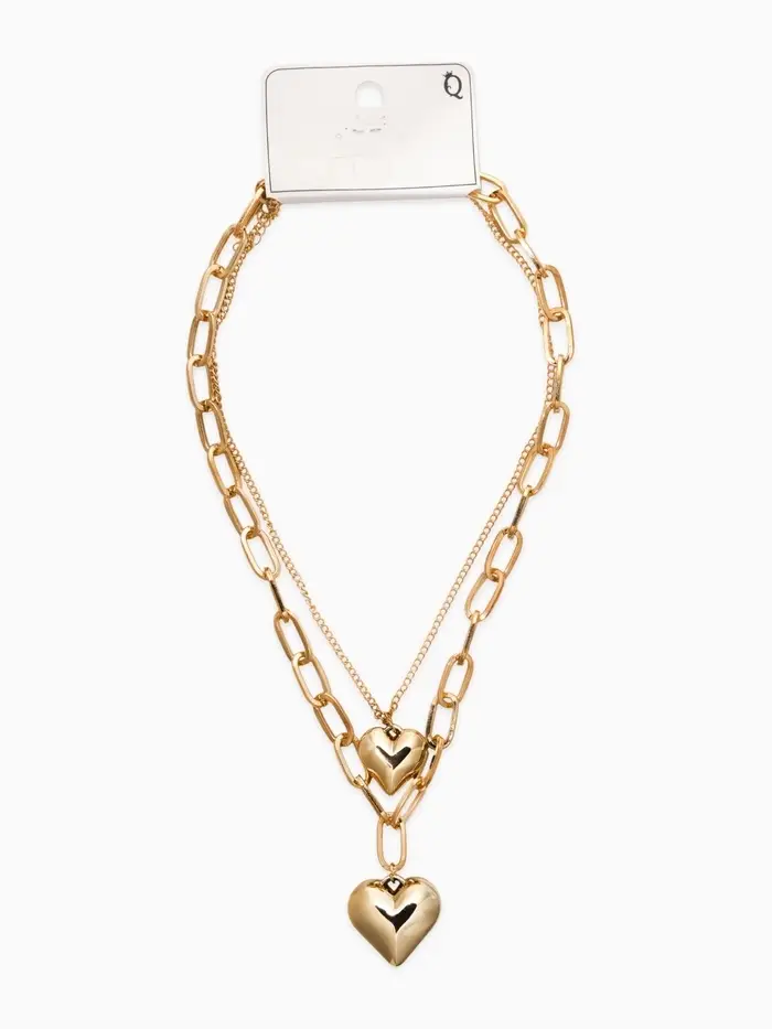 Кулон на цепочке крупное вытянутое звено 2 яруса "Сердечки", цвет золото