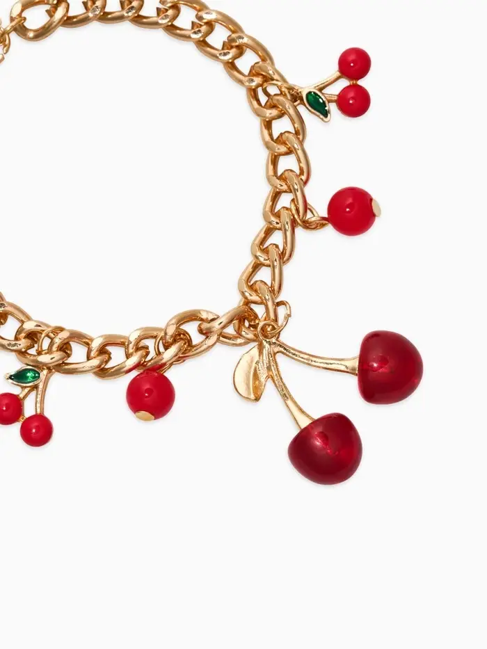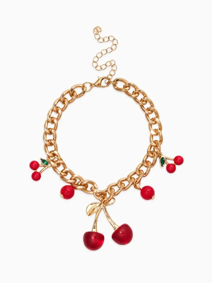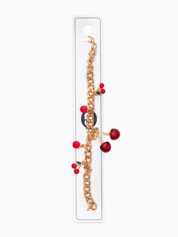 Браслет "Вишневый рай" на цепи, большая, цвет красный в золоте