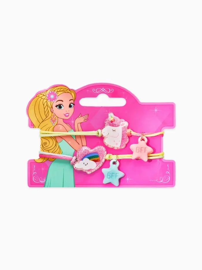 Браслеты детские парные "Выбражулька" неразлучники, единорог, звезды, разноцветный