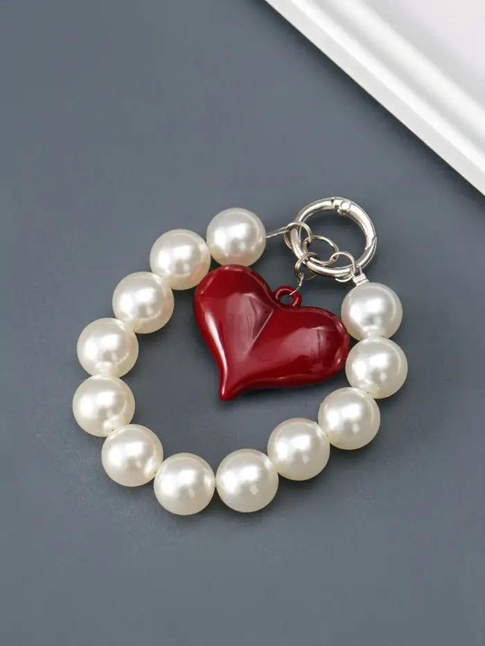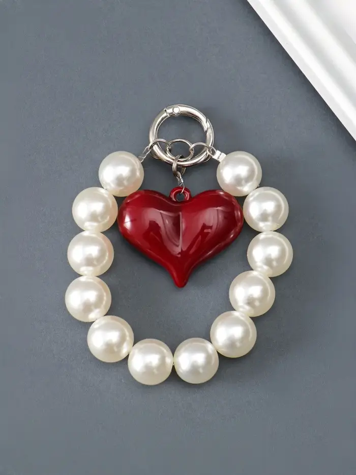 Брелок на карабине "Жемчужины и сердце" бусины d=1,6 см сердце 4,3х3,5 см 14 см
