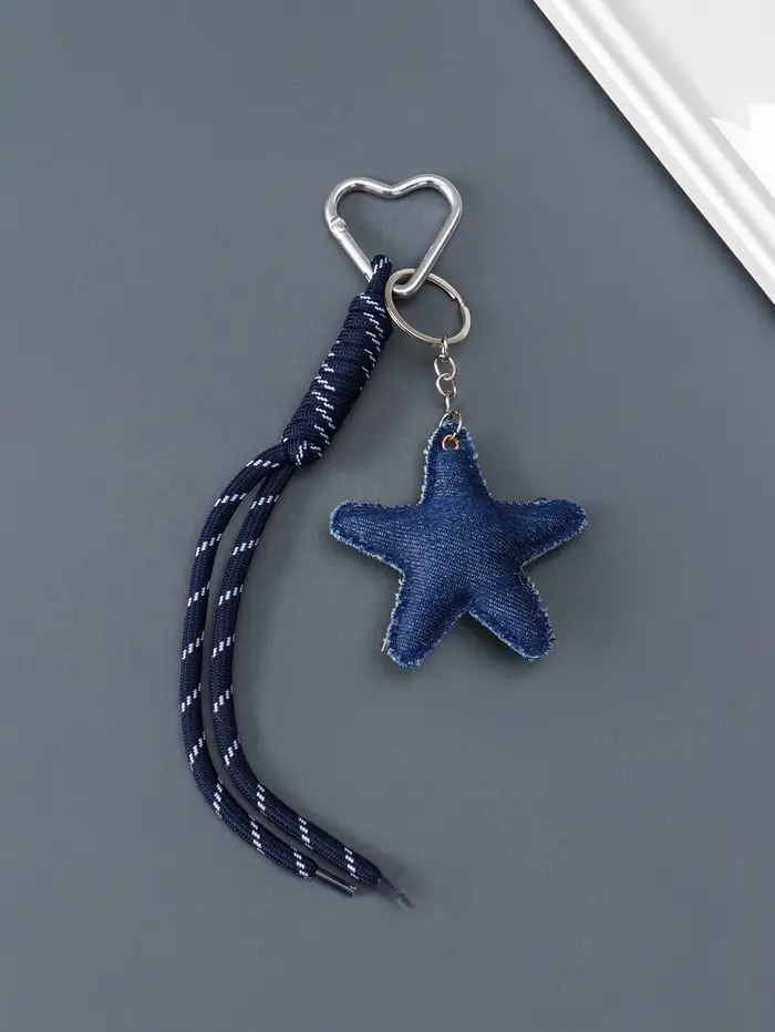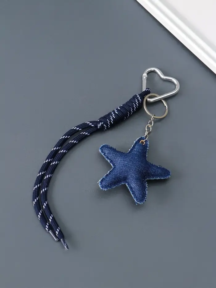 Брелок на карабине текстиль "Звезда" джинс, с узлом 21х7,7х2 см