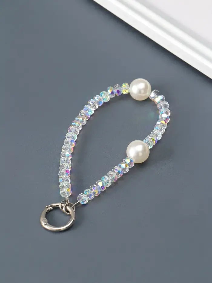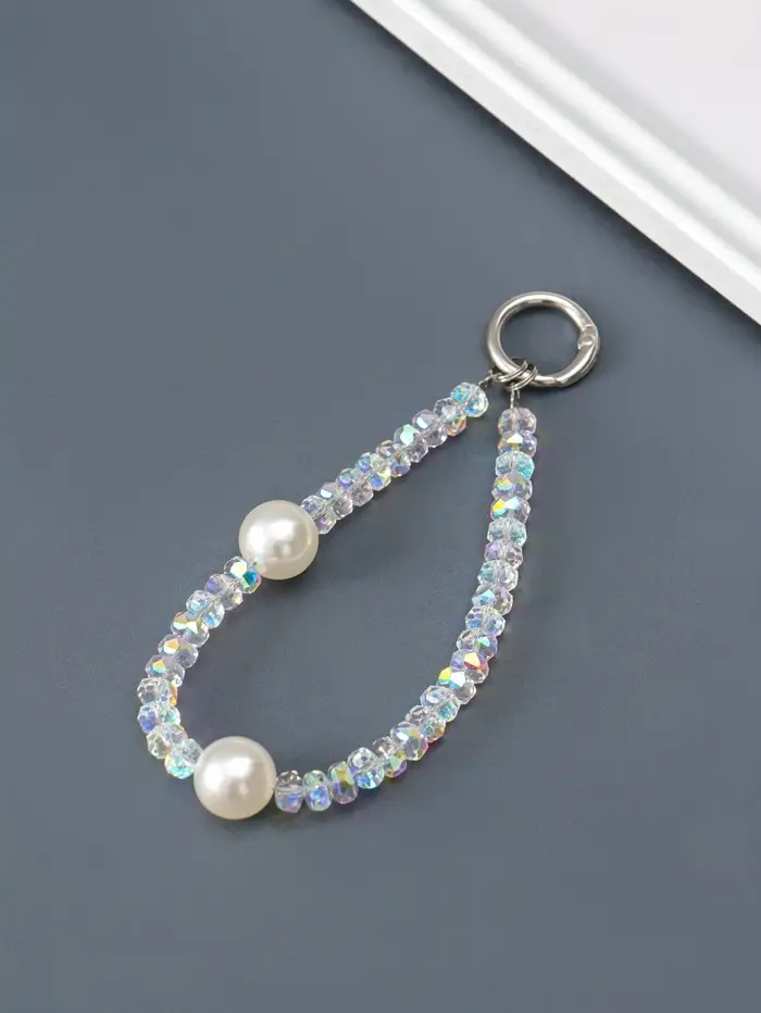 Брелок на карабине "Нить с двумя жемчужинами" бусины d=1,6 см 11х1,6 см