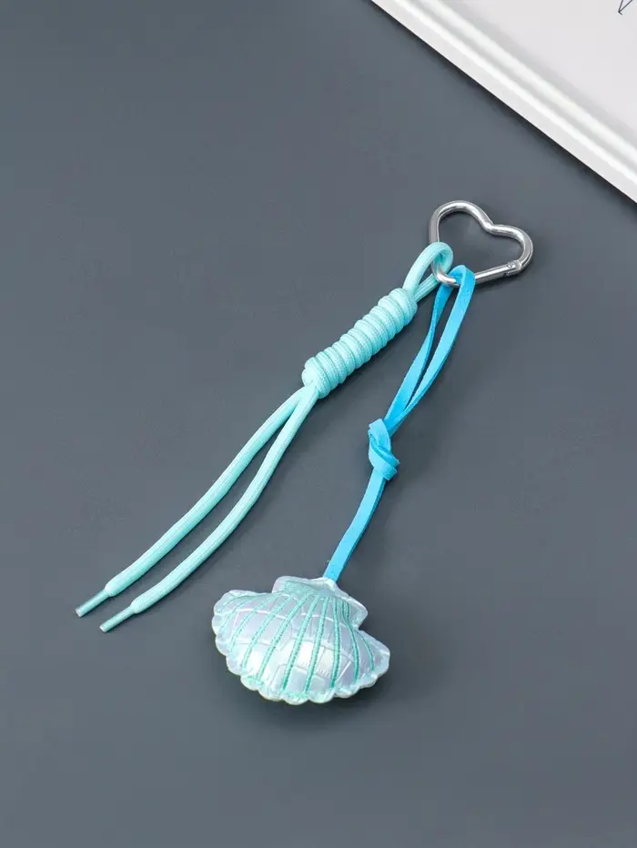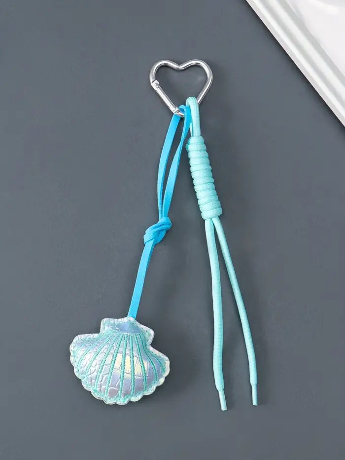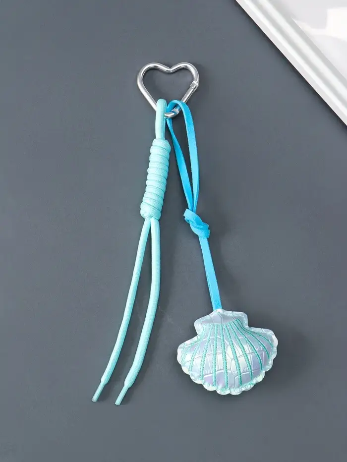 Брелок на карабине кожзам, текстиль "Морская ракушка" голубой, с узлом 22х7х2,3 см