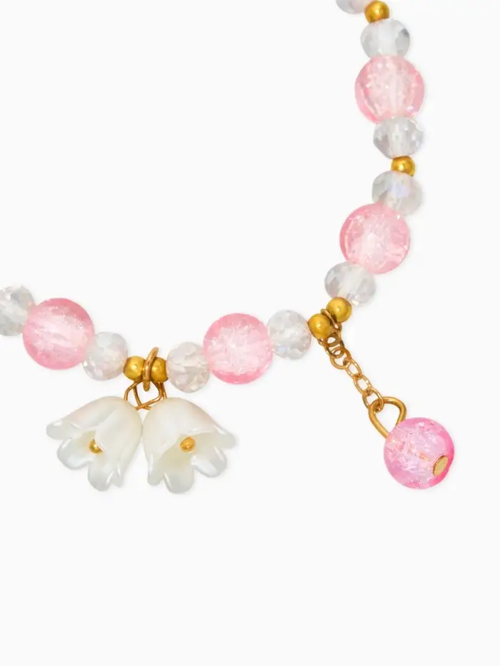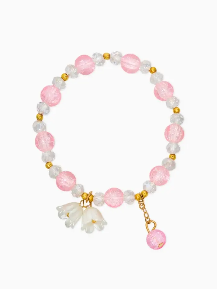 Браслет детский "Выбражулька" ландыши, цвет розово-белый в золоте