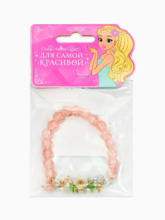 Браслет детский "Выбражулька" цветок, 2 подвеса, цвет розовоголубой в золоте