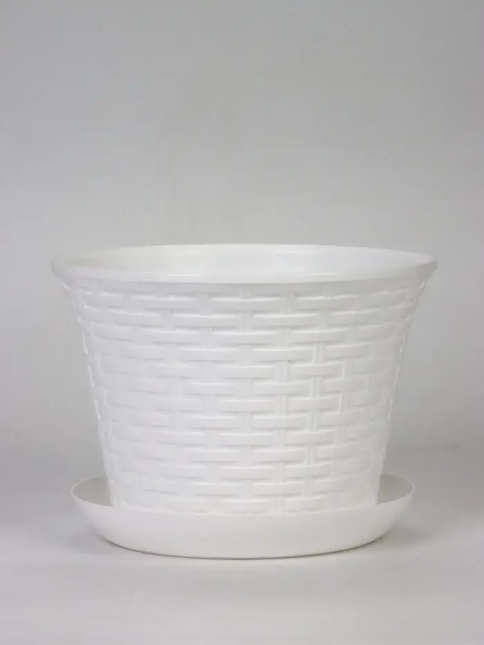 Кашпо для цветов «Ротанг», 6.1 л, d=25.5 см, h=18.9 см, пластиковое, с поддоном, белое
