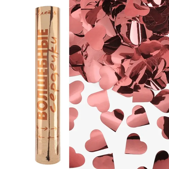 Хлопушка пневматическая "Волшебные сердечки" Сердца" фольга, розовое золото, металлик (12/30 см) 109