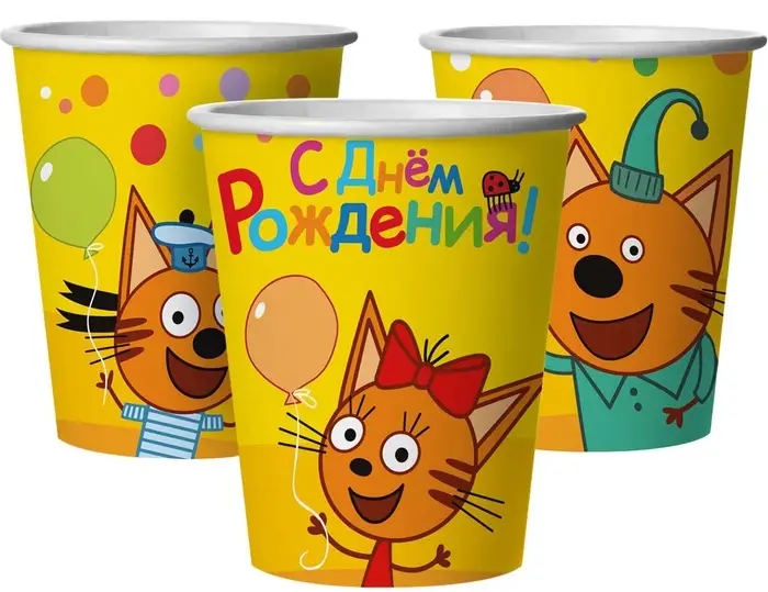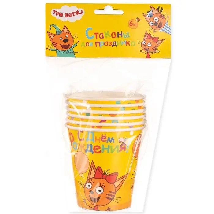 Стаканы "Три Кота. Веселый День Рождения" 6 шт.