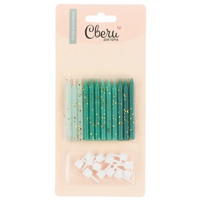 Свечи в торт "Бирюзовый микс", с блестками, 12 шт. 0,5*6 + 1 см