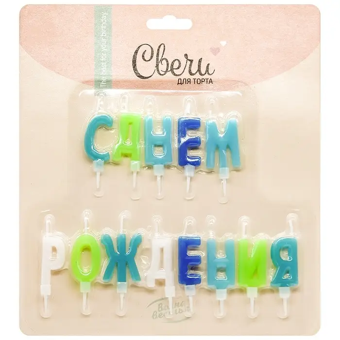 Свеча в торт "Буквы С Днем Рождения" ассорти для мальчика, 2*4 + 2 см, 1 шт.