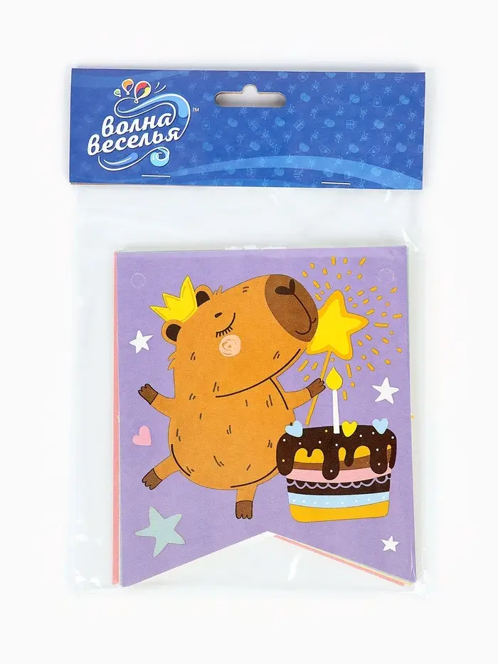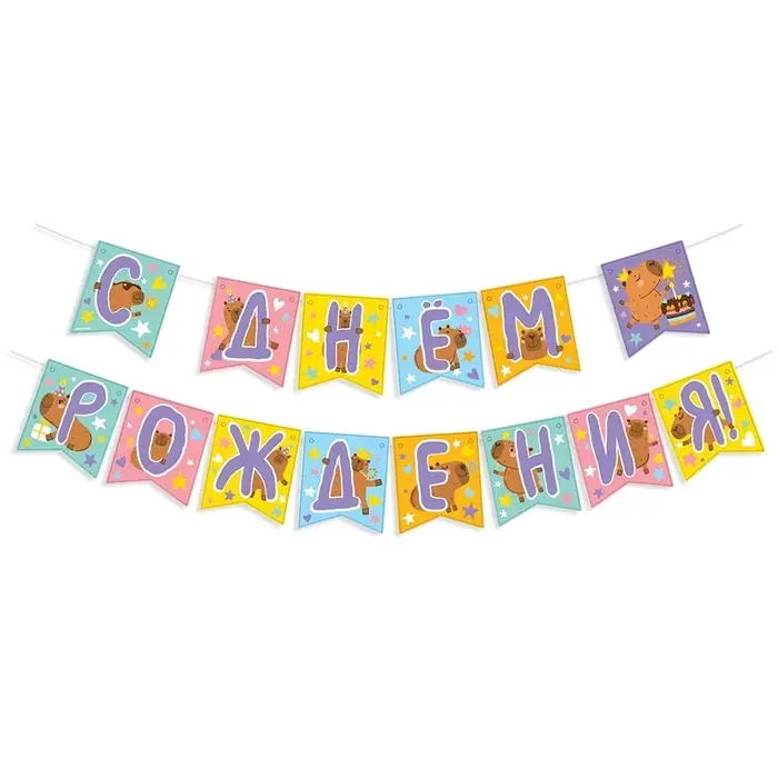 Гирлянда "Флажки, Капибары, С Днем Рождения!" 240 см.