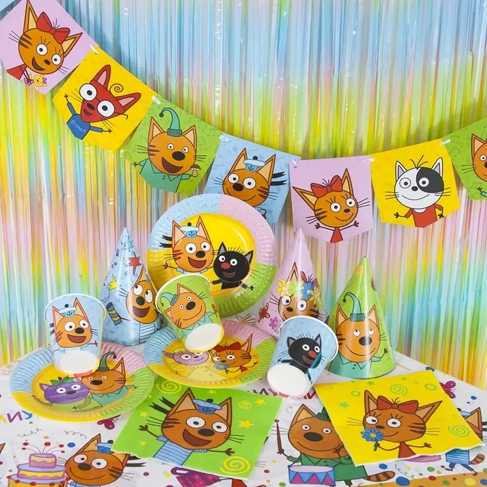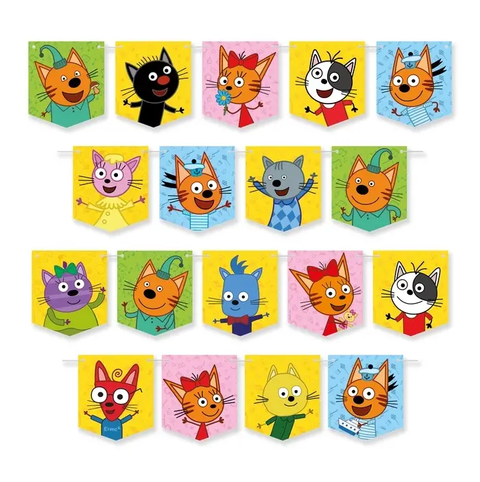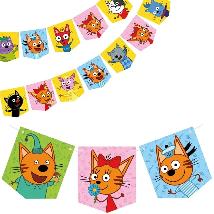 Гирлянда "Флажки, Три Кота, Играем вместе" ассорти, 300 см.