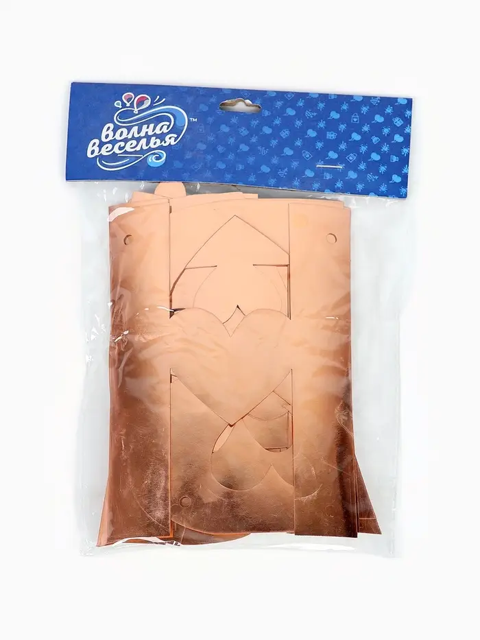 Гирлянда "Happy Birthday (резные сердца)" розовое золото, металлик, 200 см.