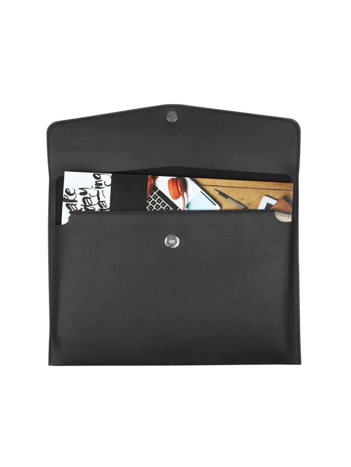Папка-конверт на кнопке, формат А4, кожзам, черная