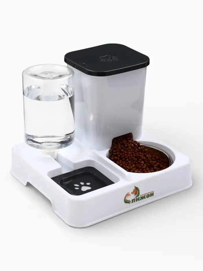 Комплекс автокормушка и автопоилка, 800 мл, с металлической миской, белый