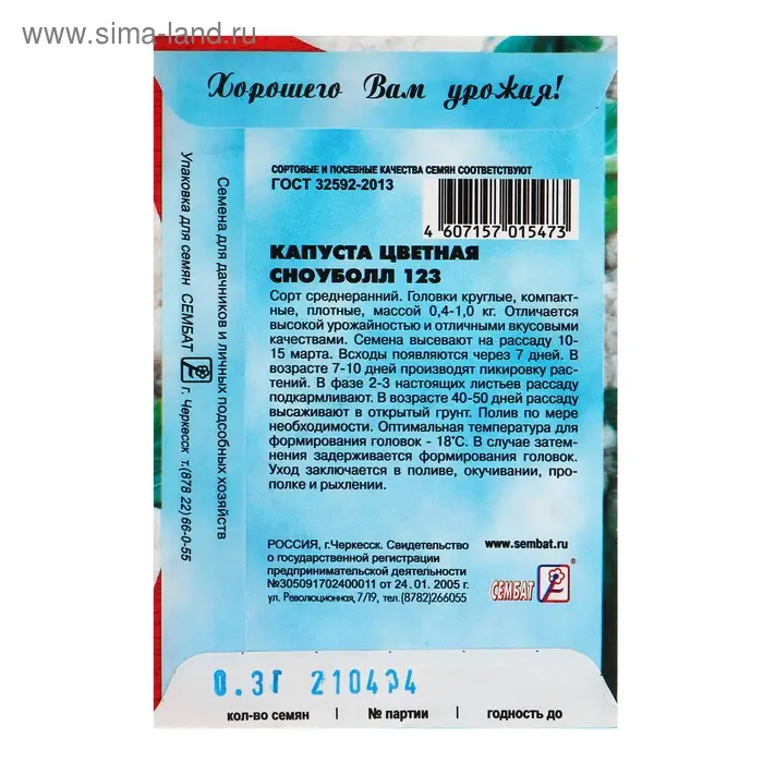 Семена Капуста цветная «Сноуболл 123», 0.3 г, «Сембат»