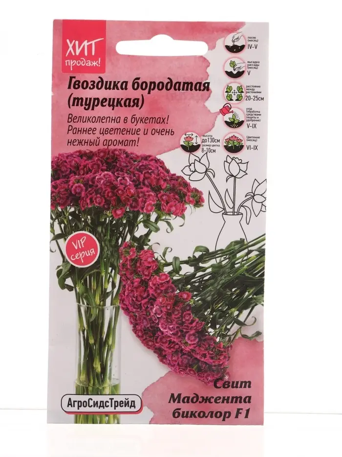 Семена цветов Гвоздика бородатая Свит Маджента биколор 6 шт