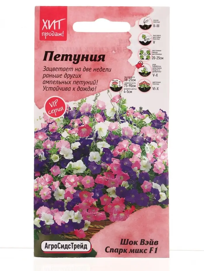 Семена цветов Петуния Шок Вэйв Спарк Микс 5 шт