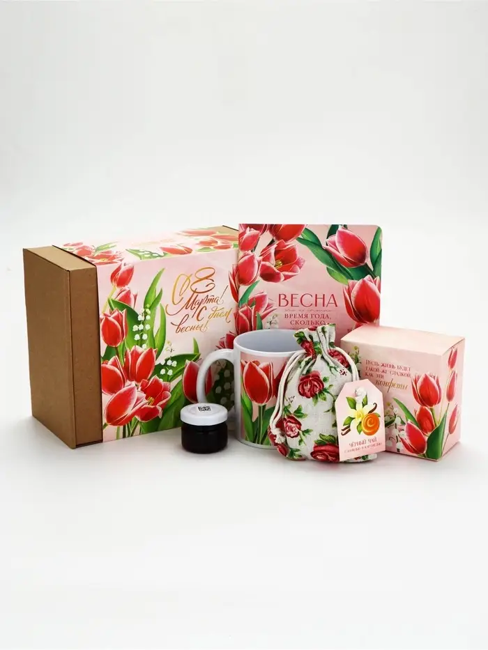 Гифтбокс с чаем, конфетами и еждневником "С 8 марта"