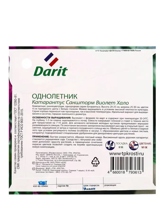 Семена цветов Катарантус Саншторм "Виолет Хало", О, 10 шт