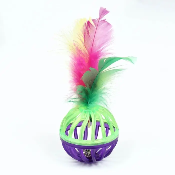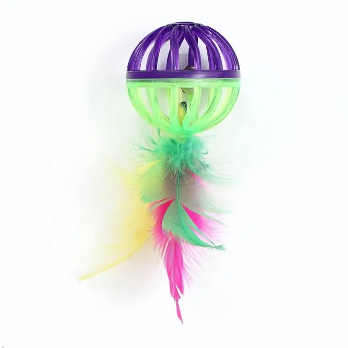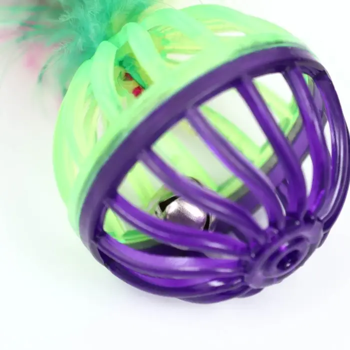 В шарике находится звонкий бубенчик, что будет провоцировать кошачий инстинкт и пушистые перья, которые он с радостью сможет ловить своими лапками! **