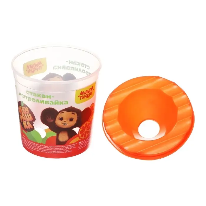Стакан - непроливайка для рисования «Мульти-Пульти. Чебурашка» (полный 250 мл, до уровня 50 мл), с рисунком
