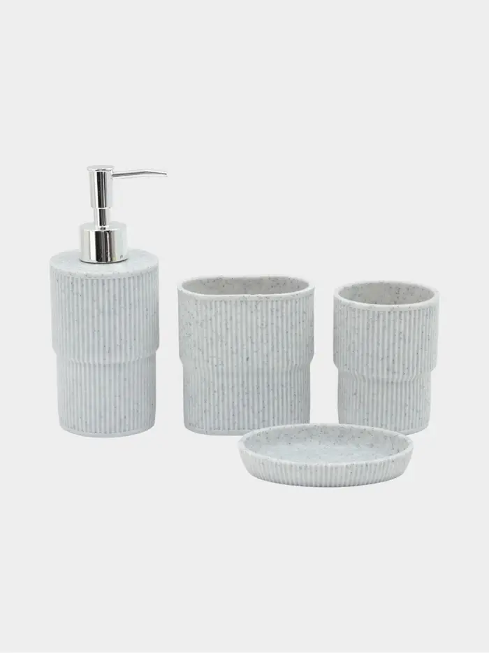 Набор для ванной «Морено», 4 предмета, дозатор, 2 стакана, мыльница, серый