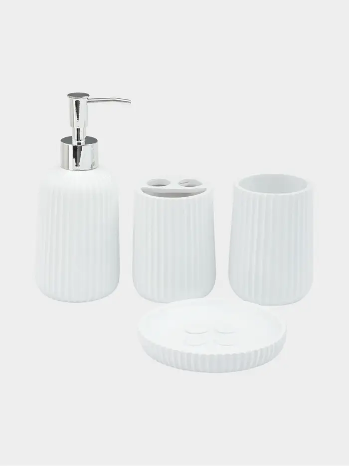 Набор для ванной «Сияние», 4 предмета, дозатор, 2 стакана, мыльница, белый