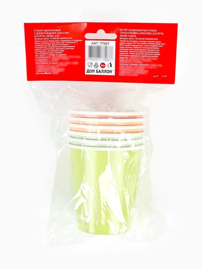 Стаканы (250 мл) С Днем Рождения, Классика, Ассорти, 6 шт.
