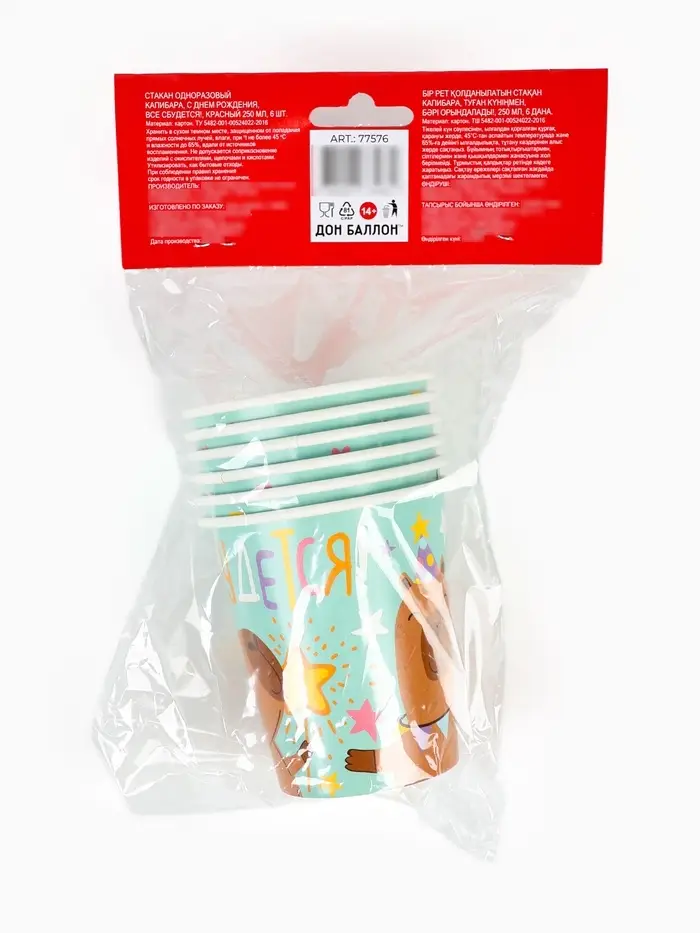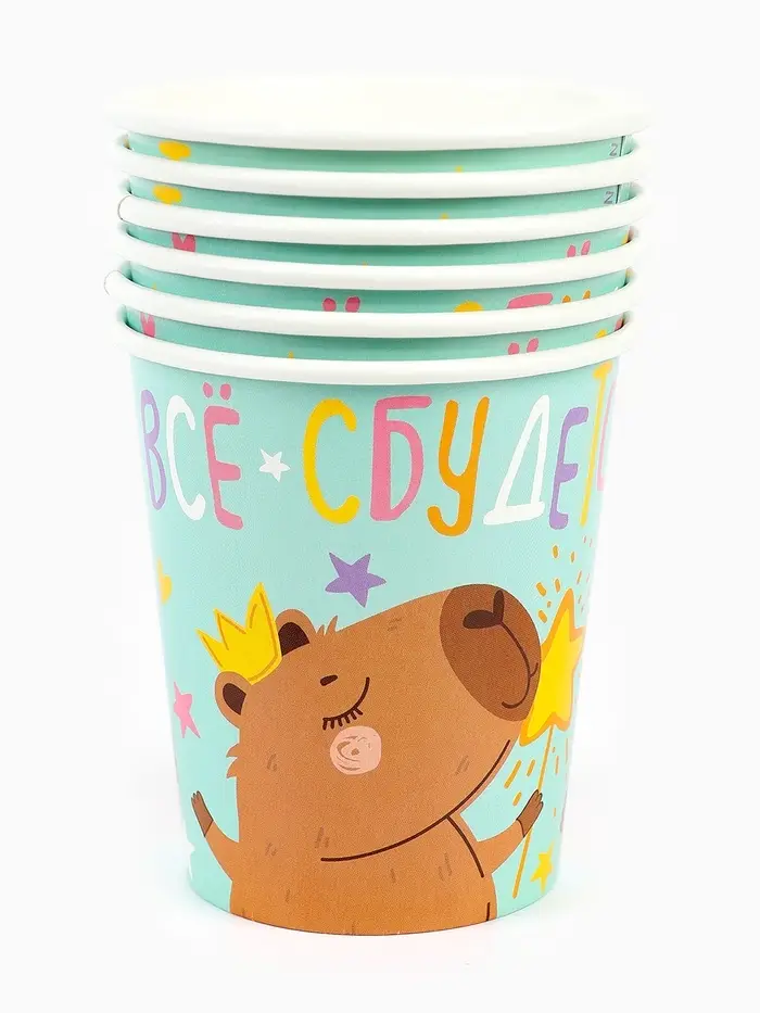 Стаканы (250 мл) Капибара, СДР, Все Сбудется!, 6 шт.
