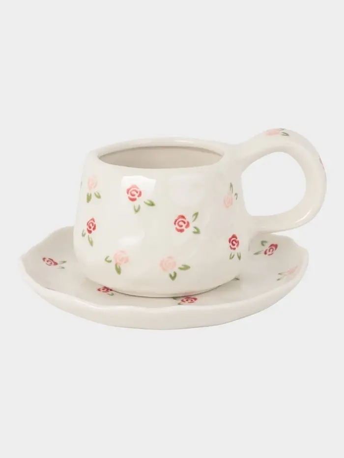 Чайная пара «Уютный дом. Роза», 2 предмета: блюдце 15×2 см, чашка 275 мл, керамика