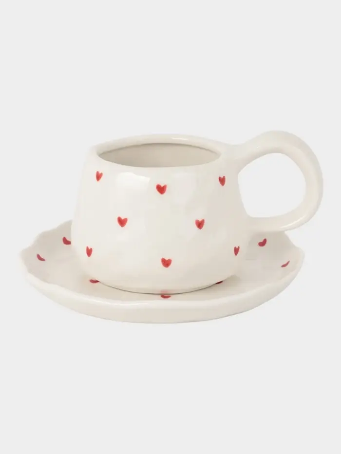 Чайная пара «Уютный дом. Сердечки», 2 предмета: блюдце 15×2 см, чашка 275 мл, керамика