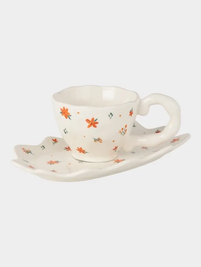 Чайная пара «Райское наслаждение», 2 предмета: блюдце 21×12×1.5 см, чашка 190 мл, керамика, оранжевая
