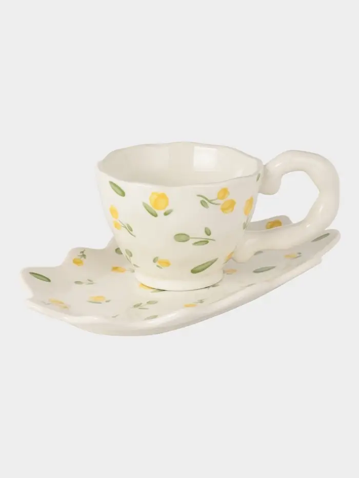 Чайная пара «Райское наслаждение», 2 предмета: блюдце 21×12×1.5 см, чашка 190 мл, керамика, жёлтая