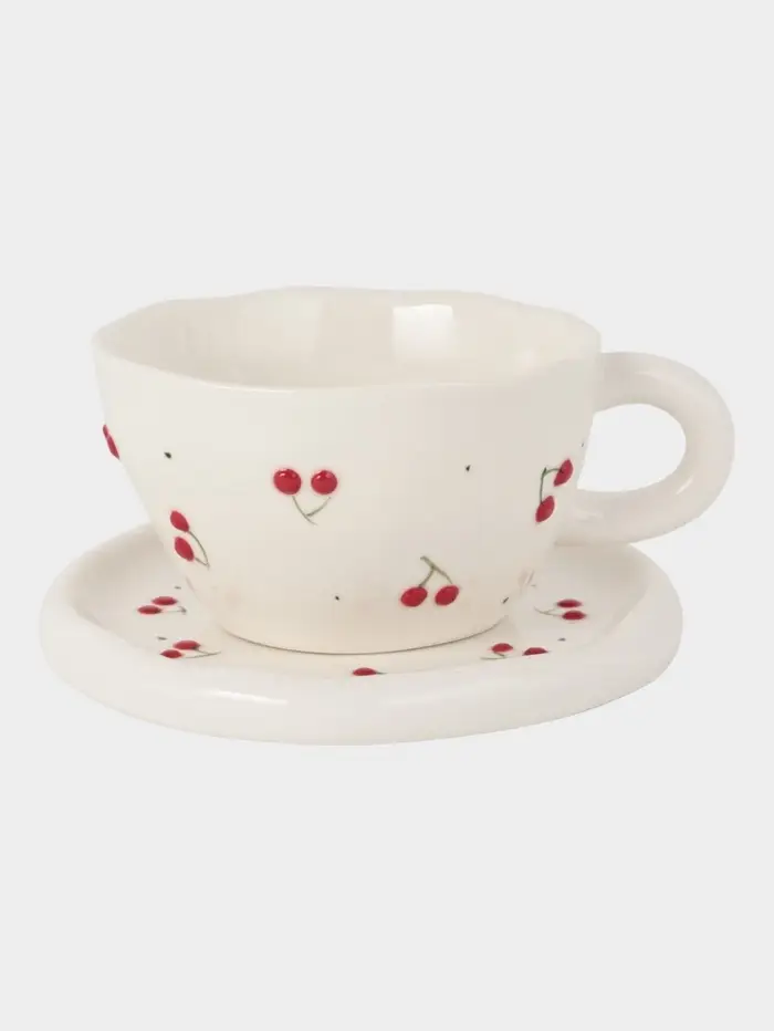 Чайная пара «Вишенки», 2 предмета: блюдце 14×1 см, чашка 260 мл, керамика