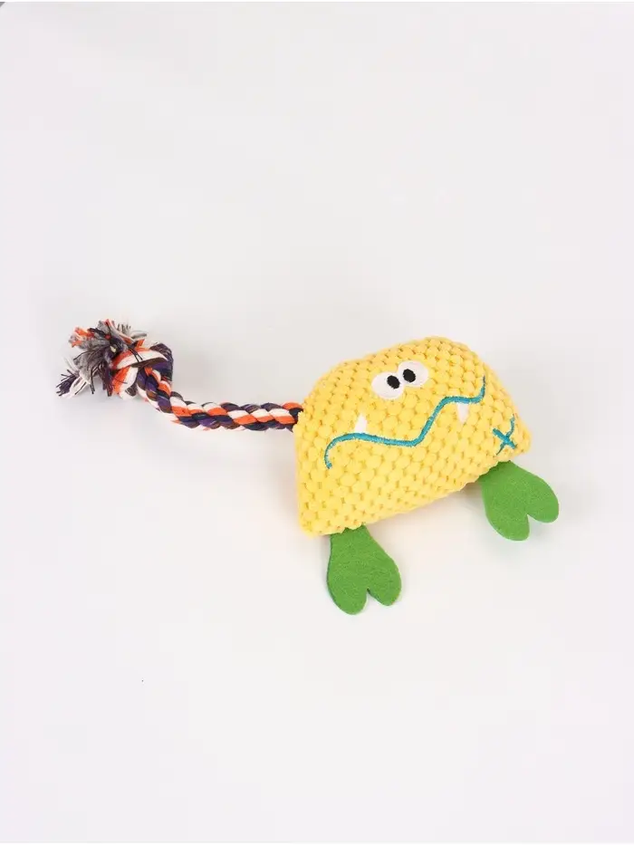 Игрушка мягкая для собак "Монстрик с канатом", с пищалкой, 23 см, желтая