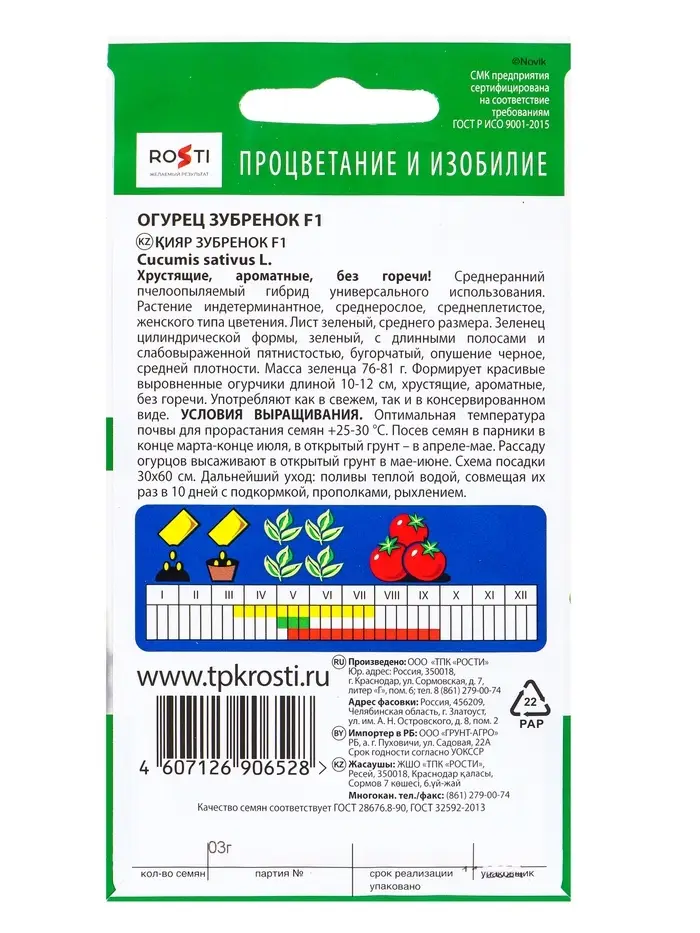 Семена Огурец Зубренок F1 Агроуспех 0,3г (400)