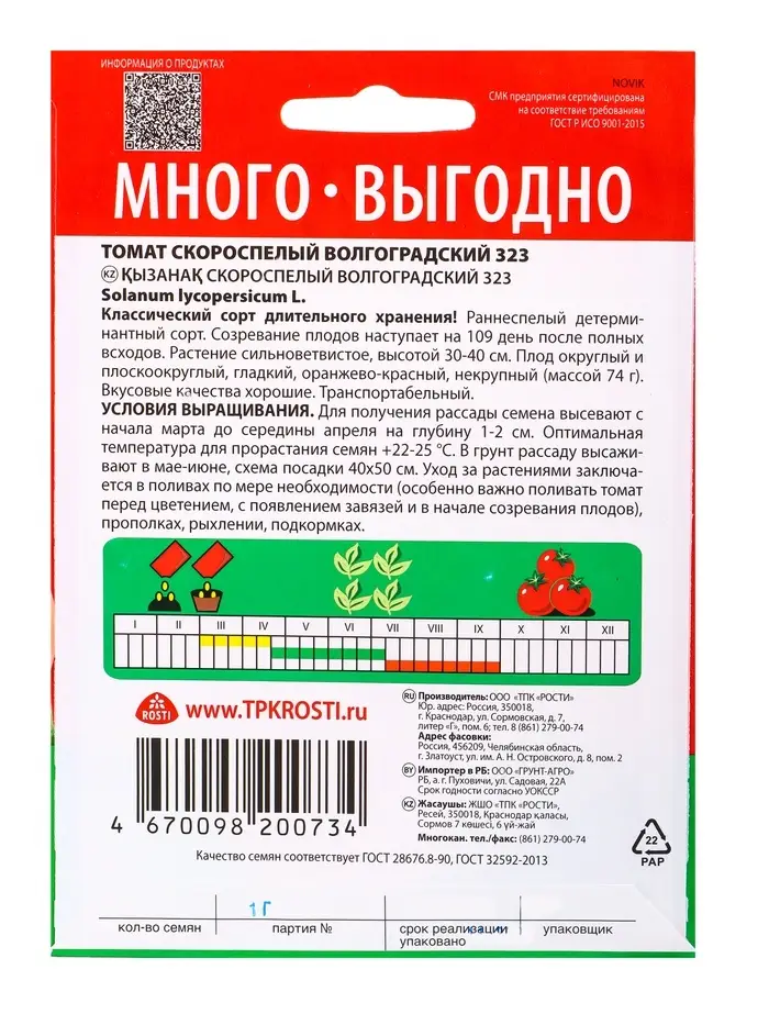 Семена Томат Волгоградский 323 ,семена Агроуспех Много-Выгодно 1г (250)