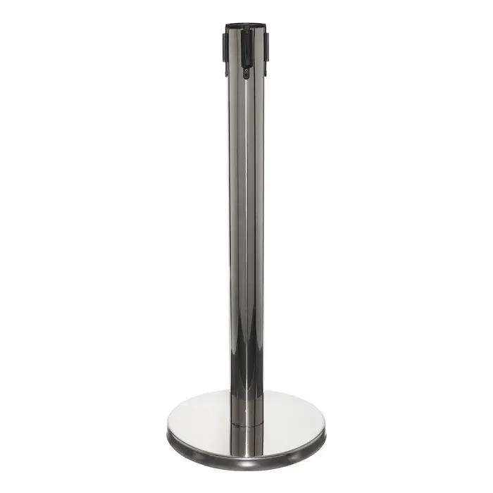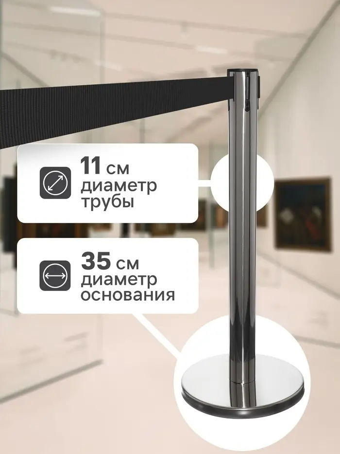 Стойка ограждения серебряная, с вытяжной лентой-470 см черная, высота-90см, d-11см, напольный d-35см