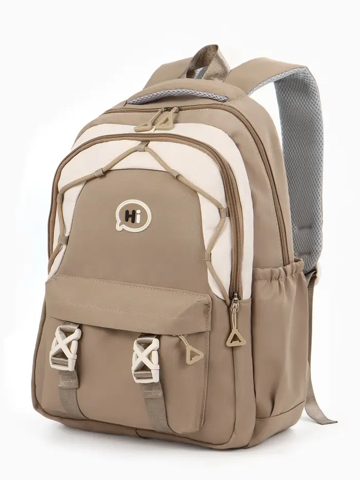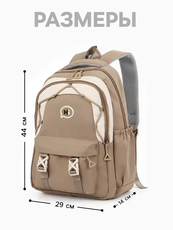 Этот бежевый школьный рюкзак создан для учениц средних и старших классов. Его эргономичная спинка с мягкими подушками обеспечивает комфорт даже при полной загрузке учебниками и ноутбуком. Вместительное основное отделение и два дополнительных кармана помогают организовать пространство, чтобы всё необходимое для учёбы было под рукой и в порядке.