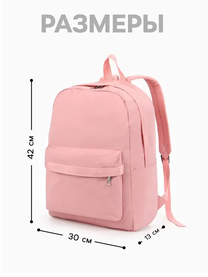 Рюкзак для девочки, однотонный, водонепроницаемый, 1 отделение, 3 кармана, 30×13×42 см, розовый