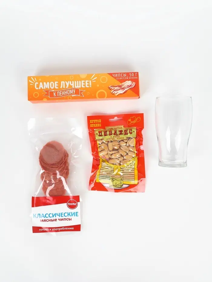 Мужской гифтбокс со снеками и стаканом для пива "Пивной набор"