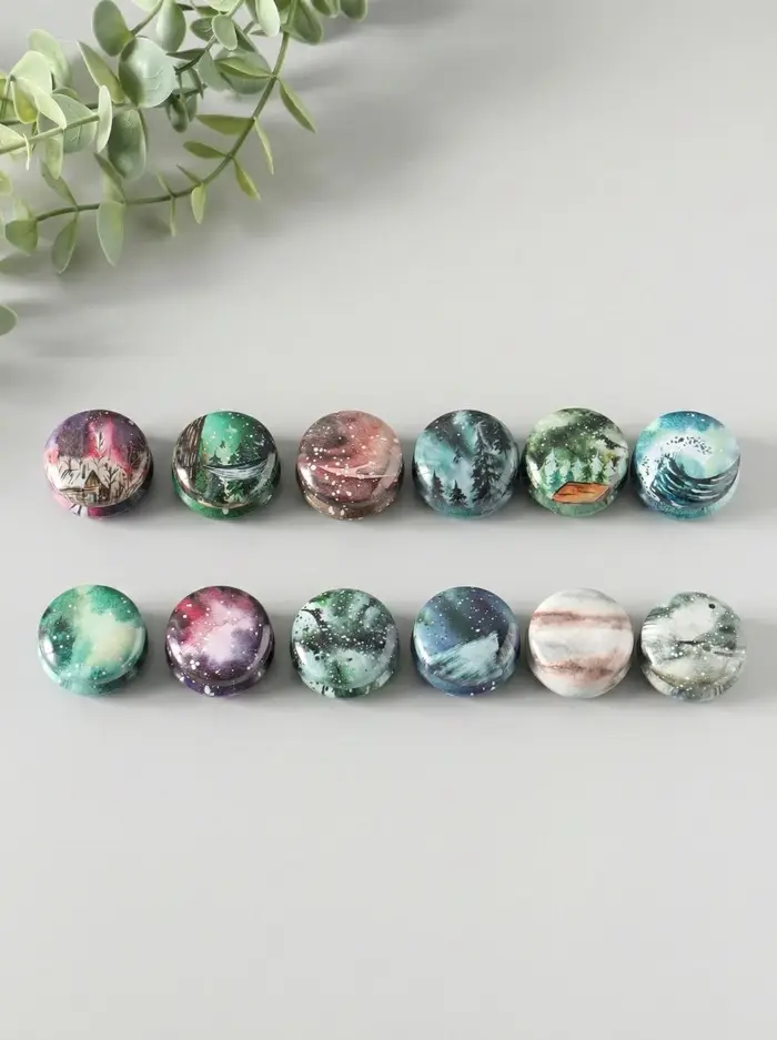 Шкатулка металл круглая "Стихии" набор 12 шт 4х4х2 см