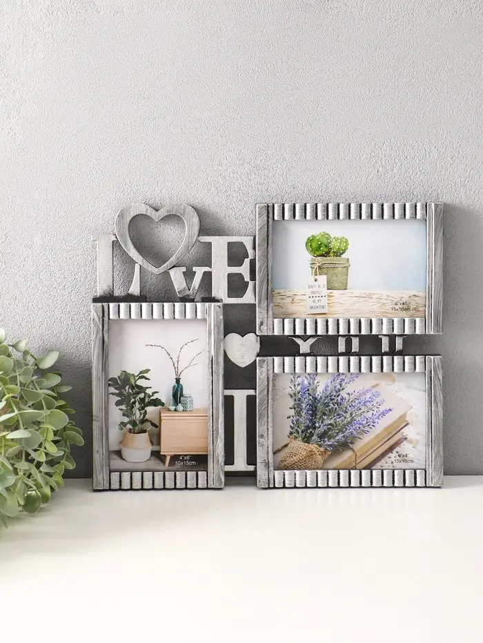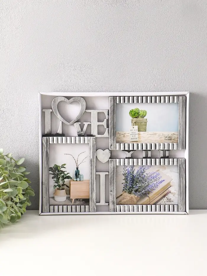 Фоторамка пластик на 3 фото 10х15 см "Я люблю тебя" тёмное серебро 31,5х25,5 см