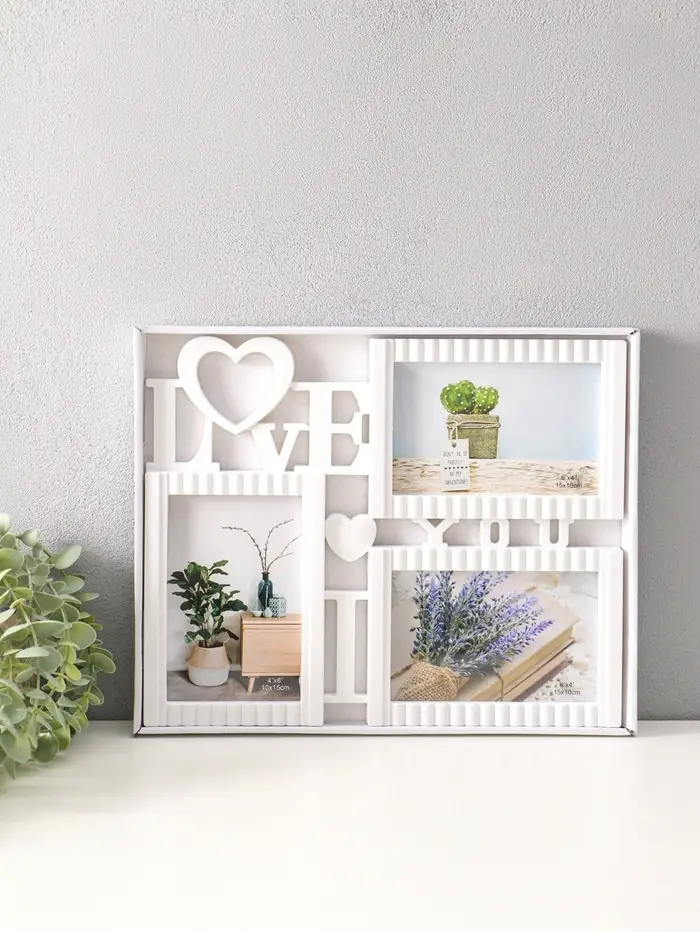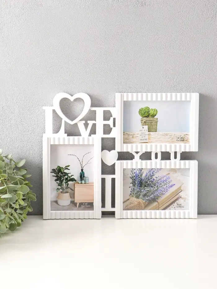 Фоторамка пластик на 3 фото 10х15 см "Я люблю тебя" белая 31,5х25,5 см