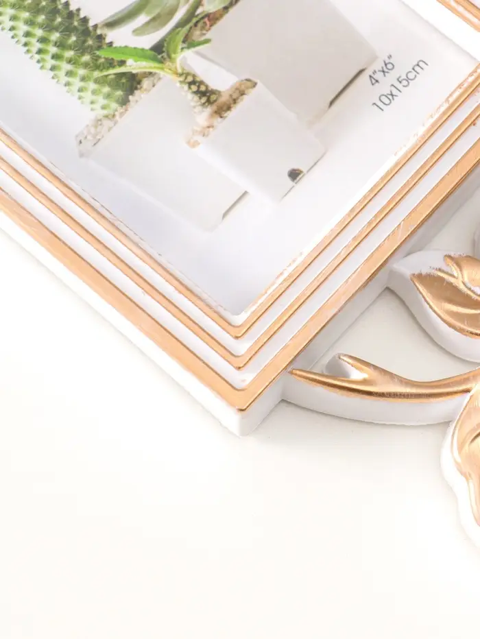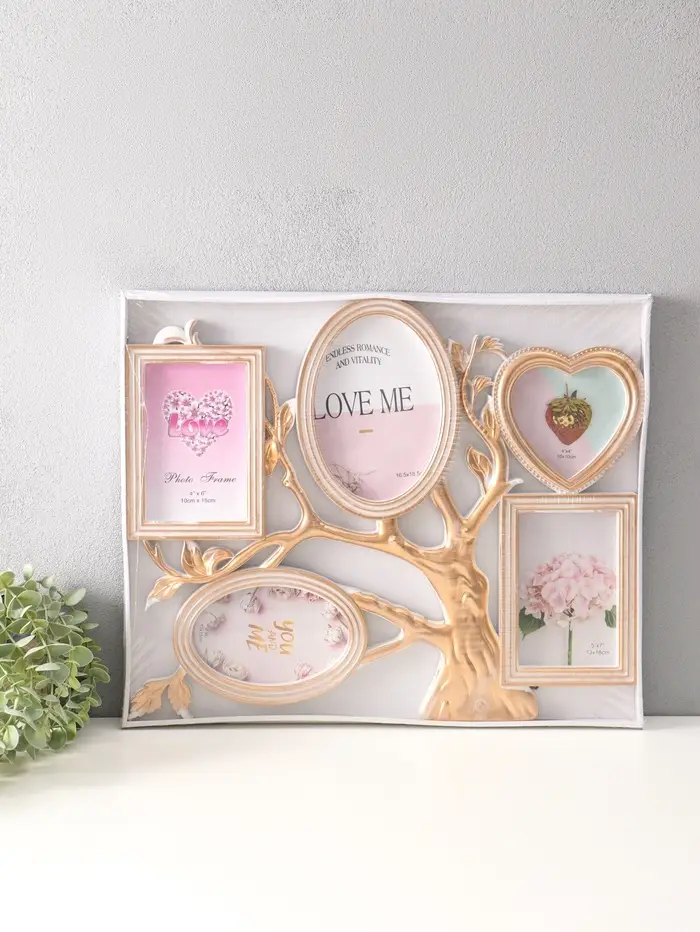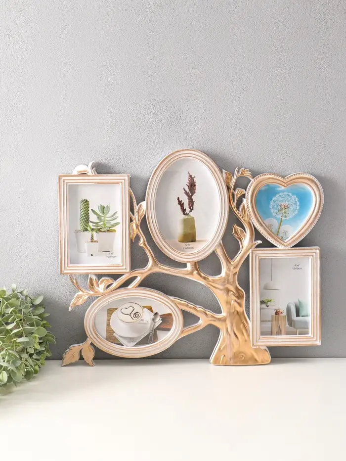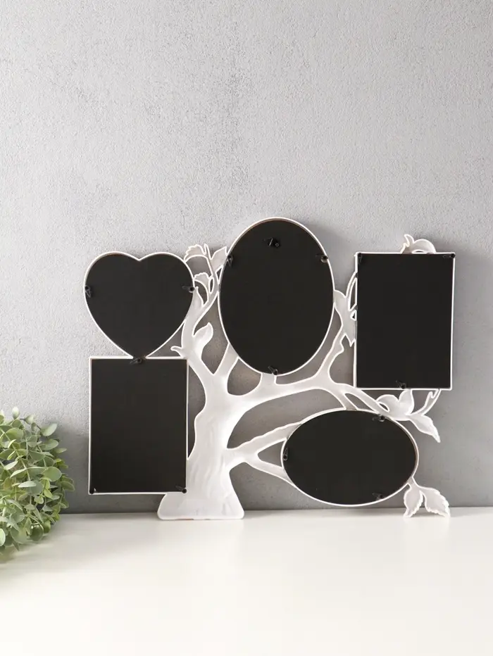 Фоторамка пластик на 5 фото 10х15, 13х13, 13х18 "Старое дерево" белая с золотом 46,5х37,5 см 10962