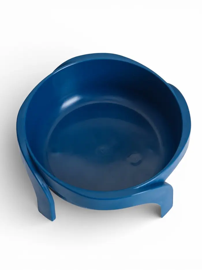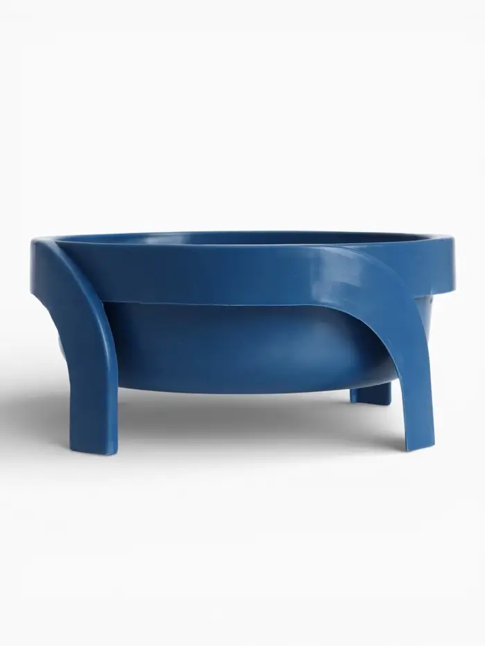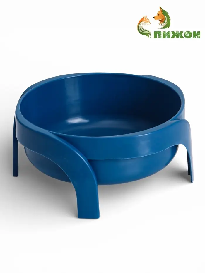 Миска на подставке выполнена из пластика в глубоком синем цвете. Круглая форма и приподнятая конструкция делают её удобной как для кошек, так и для мелких и средних собак.