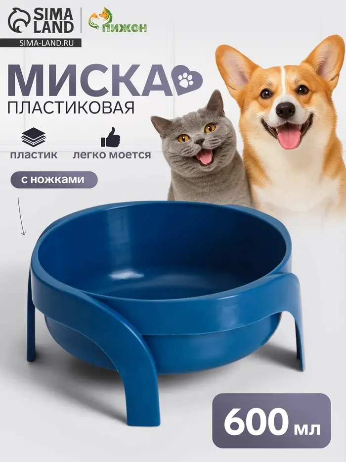 Миска, 600 мл, фигурная, с ножками, пластик, синяя